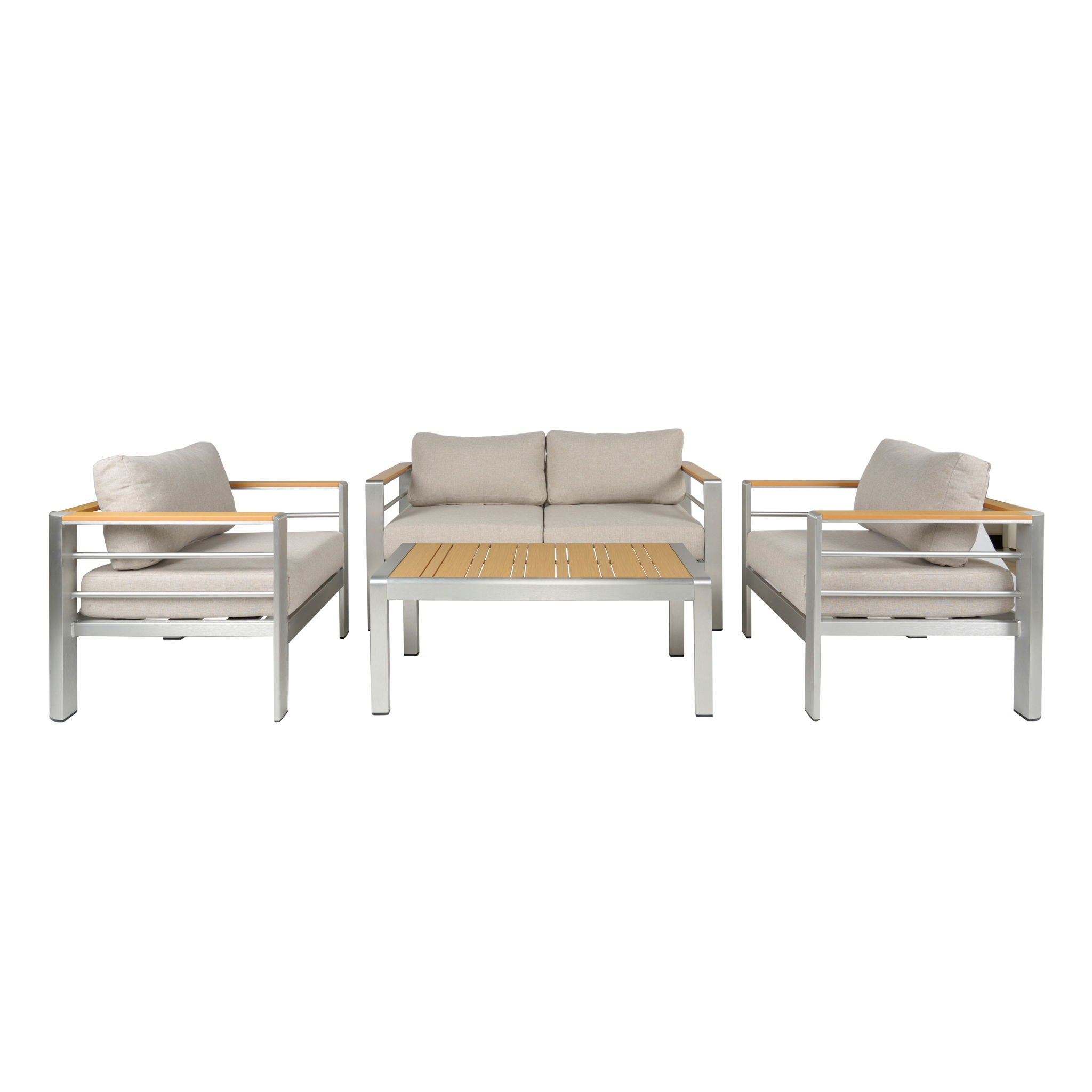 Cora - Outdoor Patio Aluminum 4 Pieces Chat Set - Beige / Natural / Silver