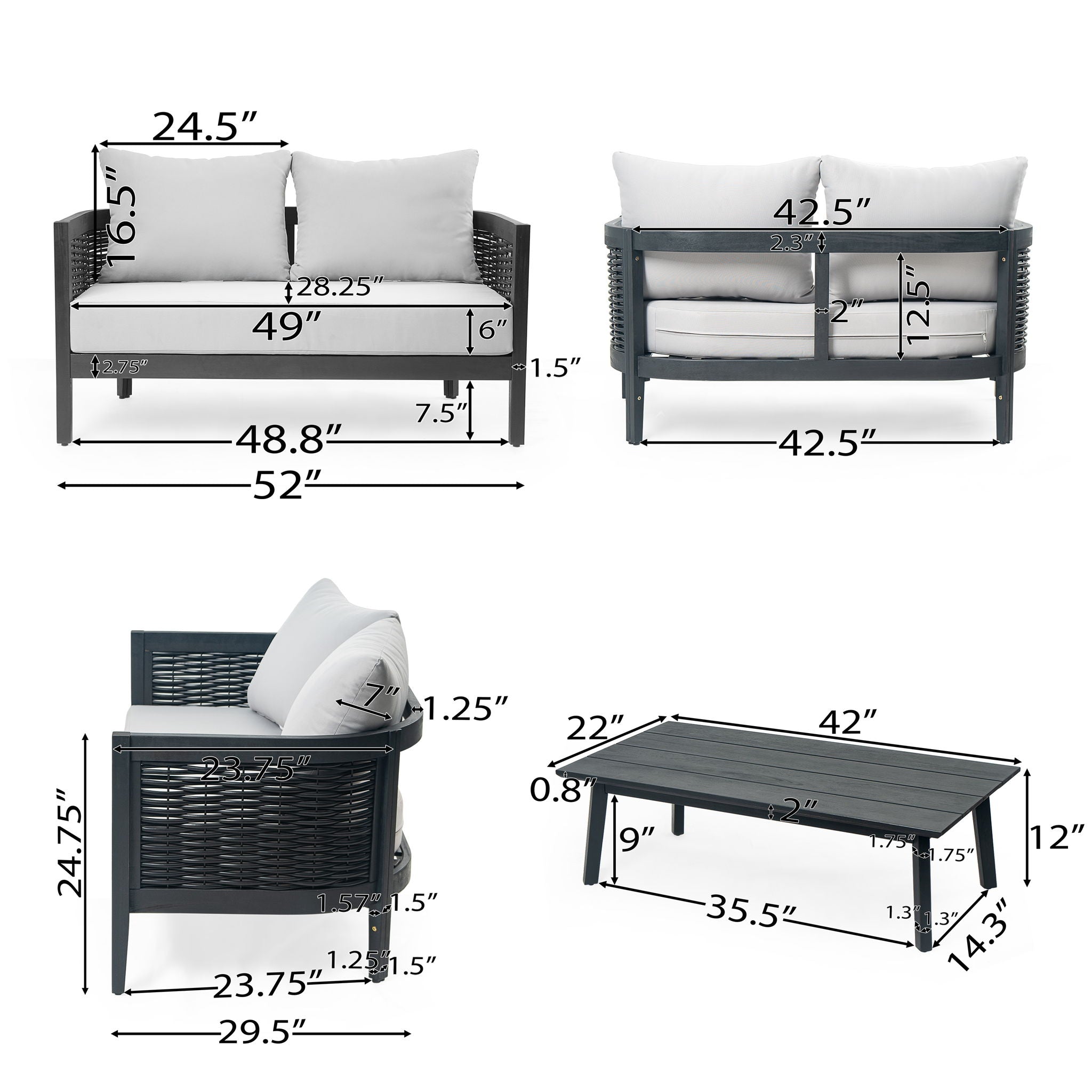 • Outdoor Seating Group With Cushions 2 Person - Gray
