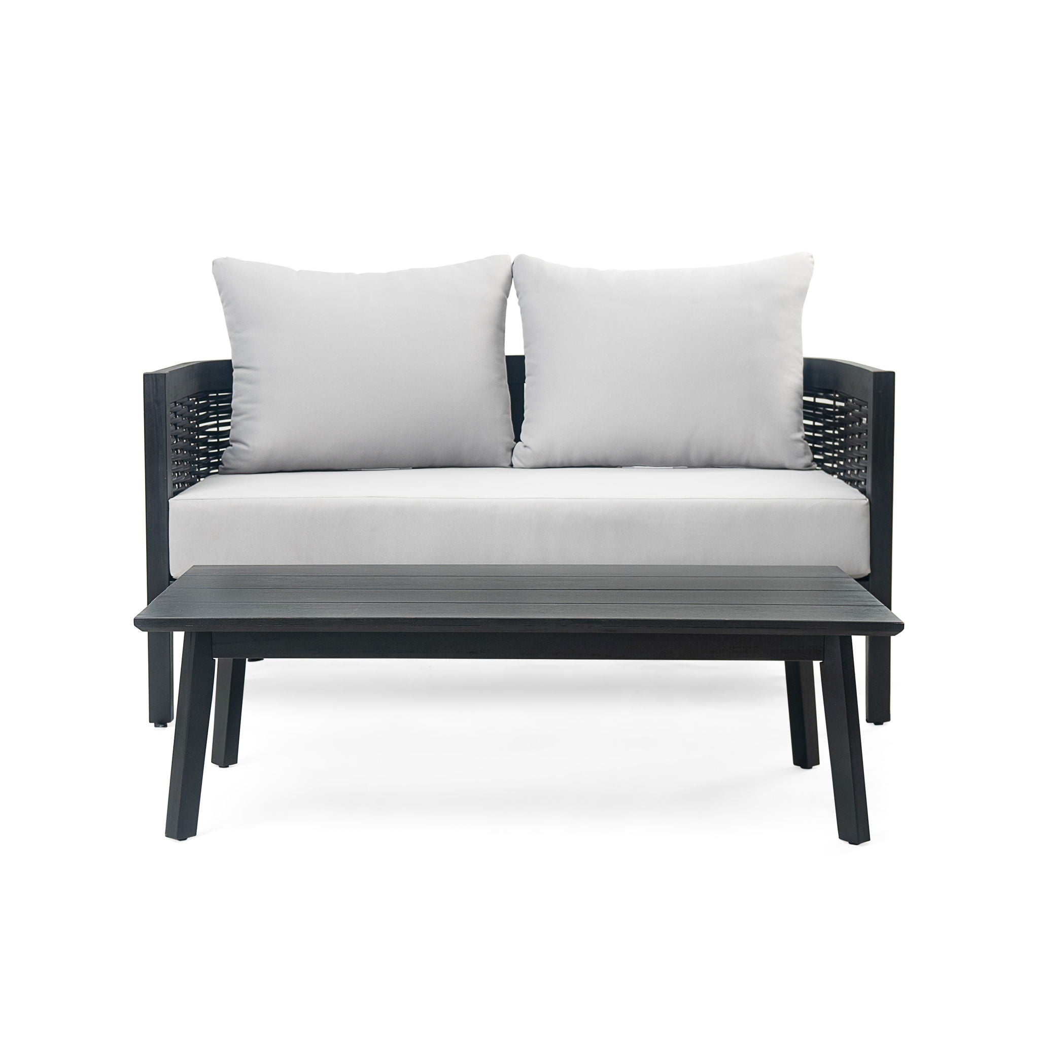 • Acacia Wood Loveseat And Coffee Table Set With Cushions