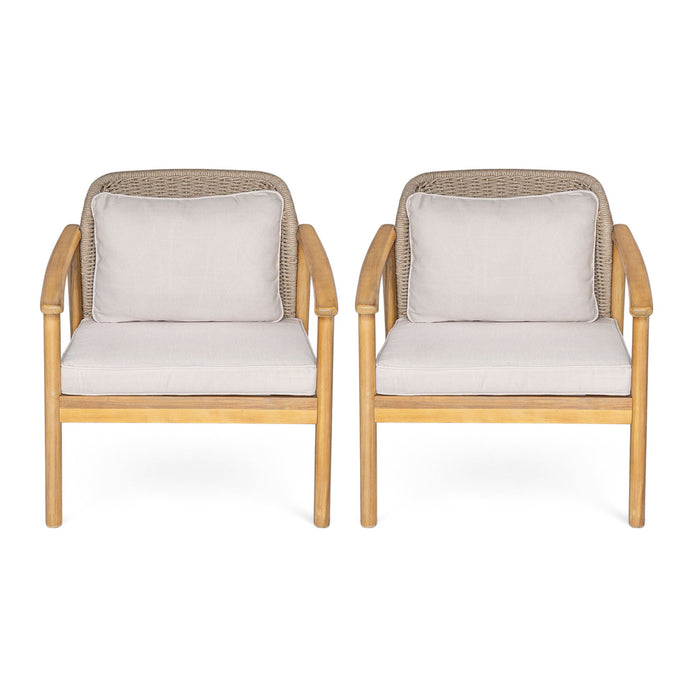 2 Piece Outdoor Acacia Wood Patio Club Chair, Patio Furniture Arm Chair With Woven Rope Backrest, Deep Seating For Porch - Light Teak / Beige