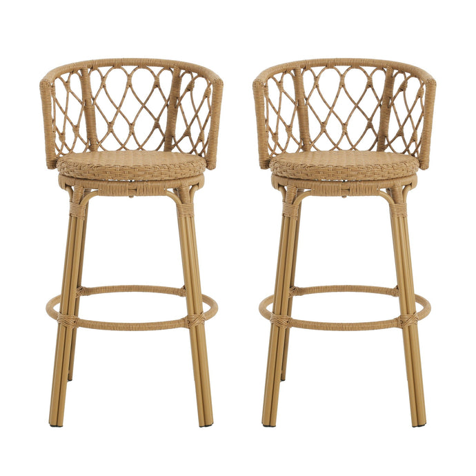 Bohemia - Outdoor Brown Wicker Bar Stool (Set of 2) With Metal Frame And Faux Rattan - Light Brown