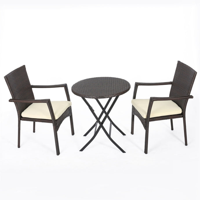 3 Piece Bistro Set With Water Resistant Cushions And 2 Chairs - Brown Multi