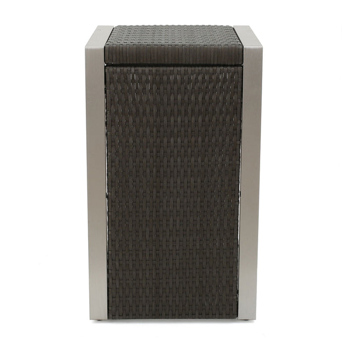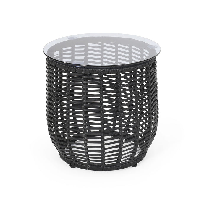 Achill - Outdoor Modern Boho Wicker Side Table With Glass Top - Gray