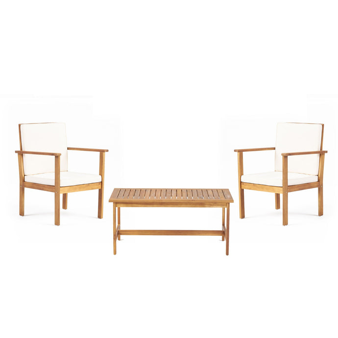 3 Piece Patio Set With Slatted Design, 2 Club Chairs And Coffee Table - Brown