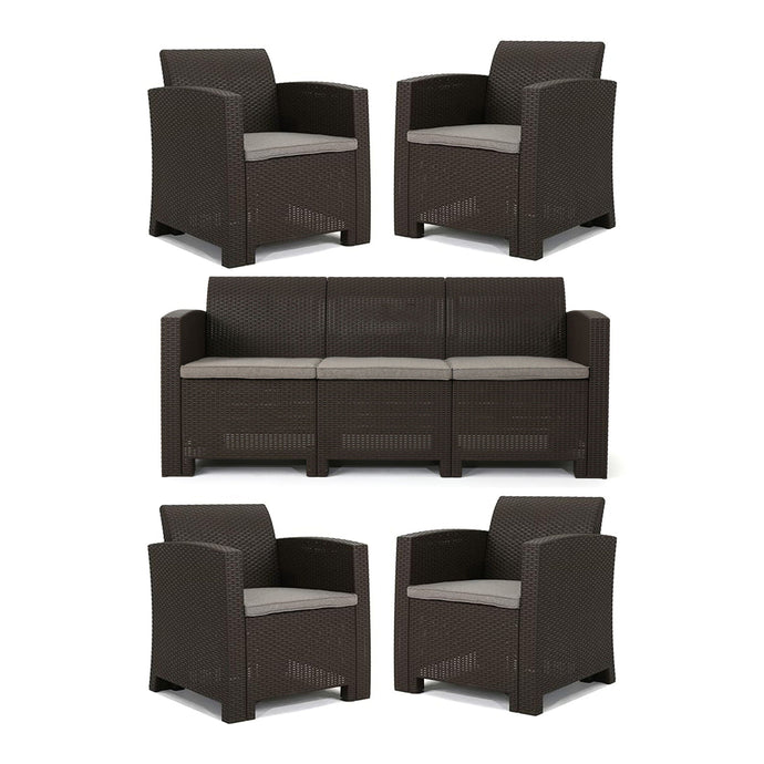Outdoor Faux Wicker Rattan Style Chat Set With Water Resistant Cushions, 5 Pieces Set - Brown / Mix Beige