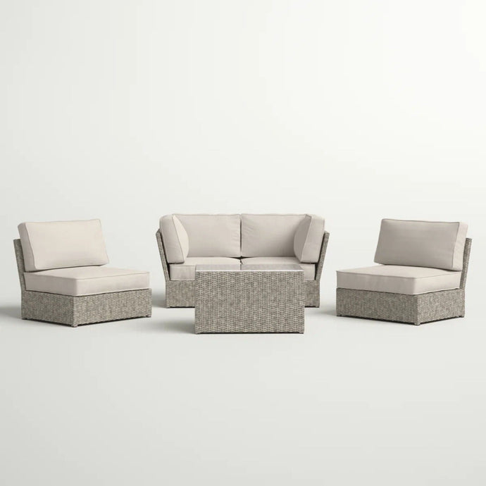 4 Person Patio Seating Set With Cushions, All Weather - Gray