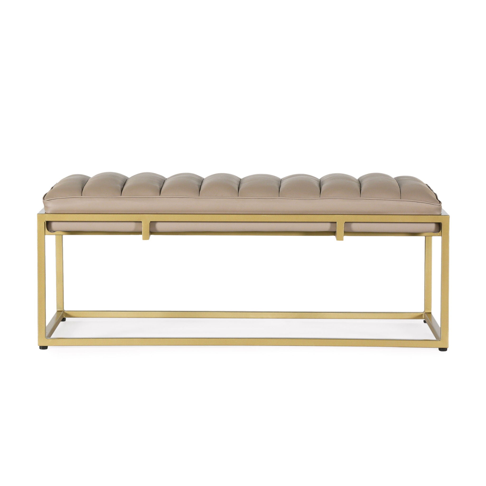 - Elegant Design: This dark cream bonded leather bench features a matte gold iron frame, adding a touch of sophistication to any space.