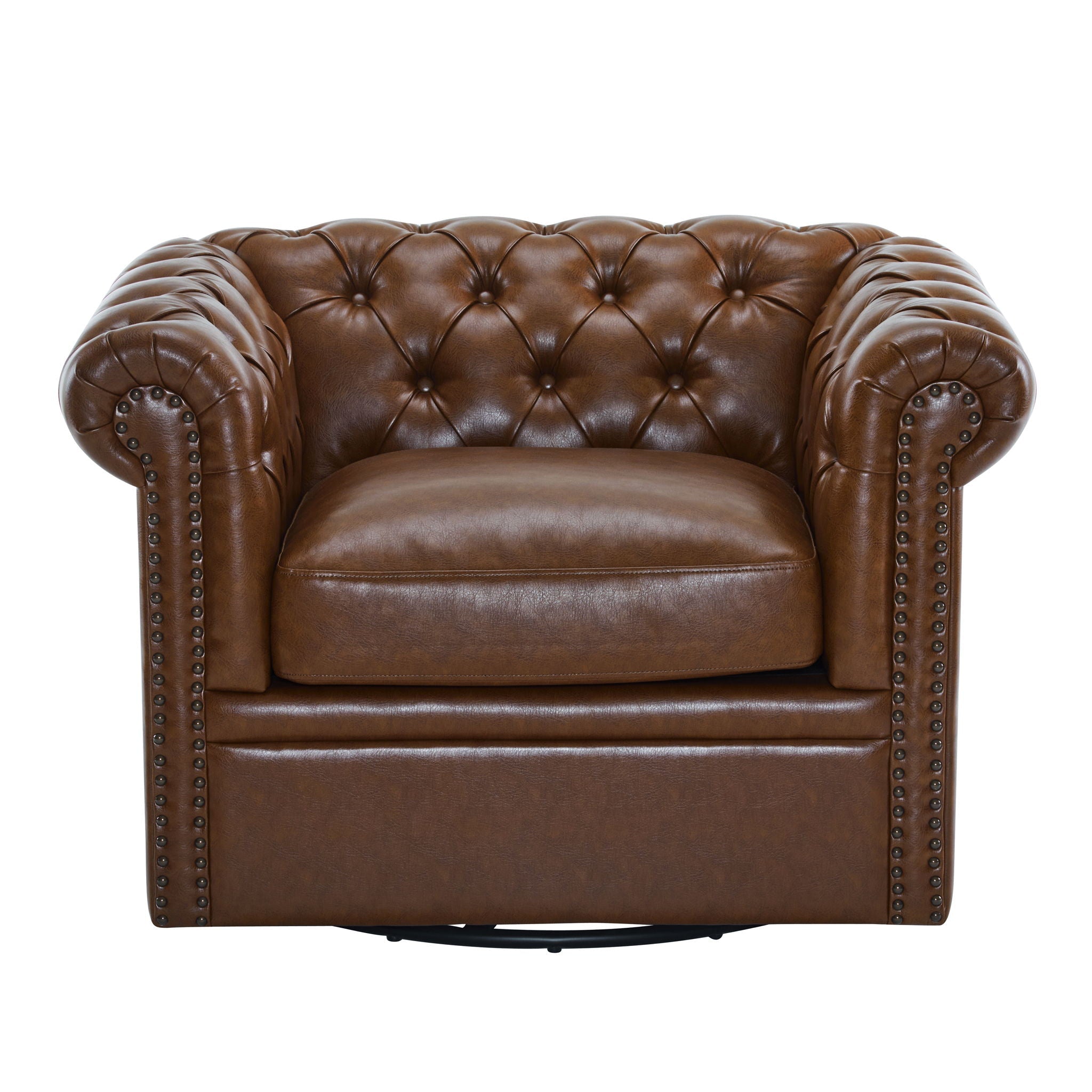 Chesterfield Style Swivel Club Chair With Button Tufted Upholstery - Dark Brown