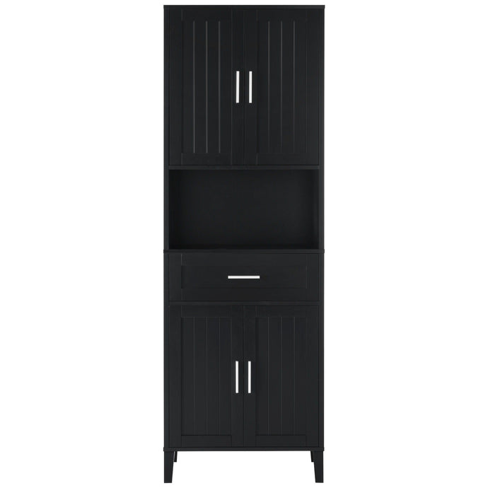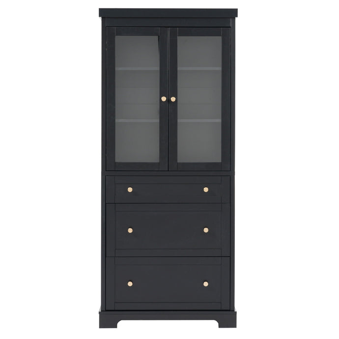 Freestanding Tall Bathroom Cabinet With Adjustable Shelves, Drawers, Soft Close Glass Doors