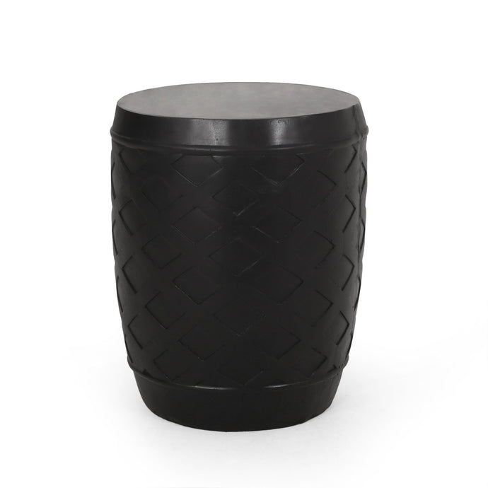 Outdoor Side Table With Lattice Design And Round Top - Black