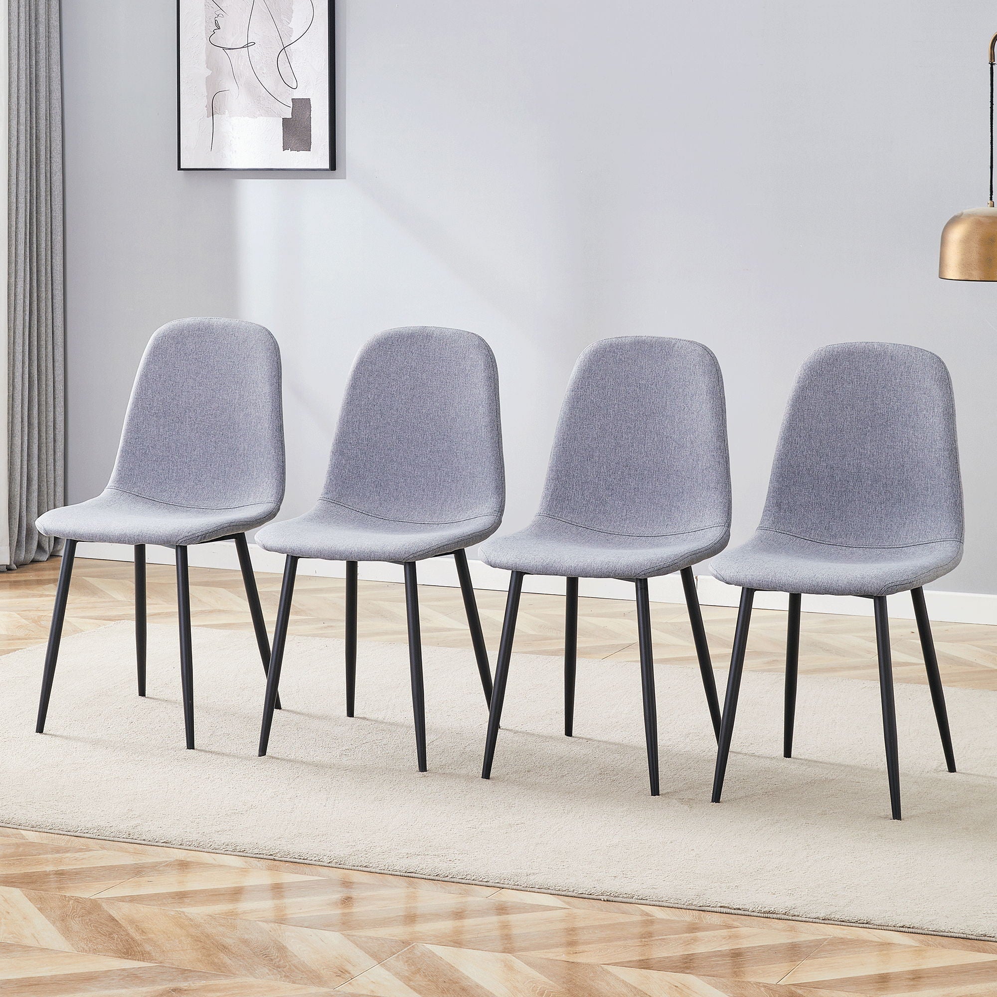 Luxury Simple Chair Linen Cotton High Resilience Dining Chair With Black Metal Legs (Set of 4) - Light Gray