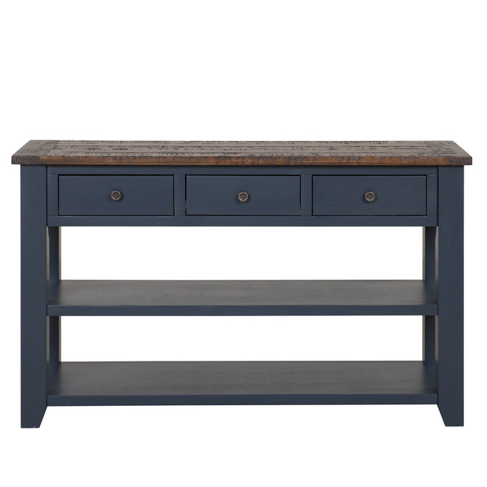 49'' Rectangular Solid 3 Drawer 2 Shelf Console Table - Blue