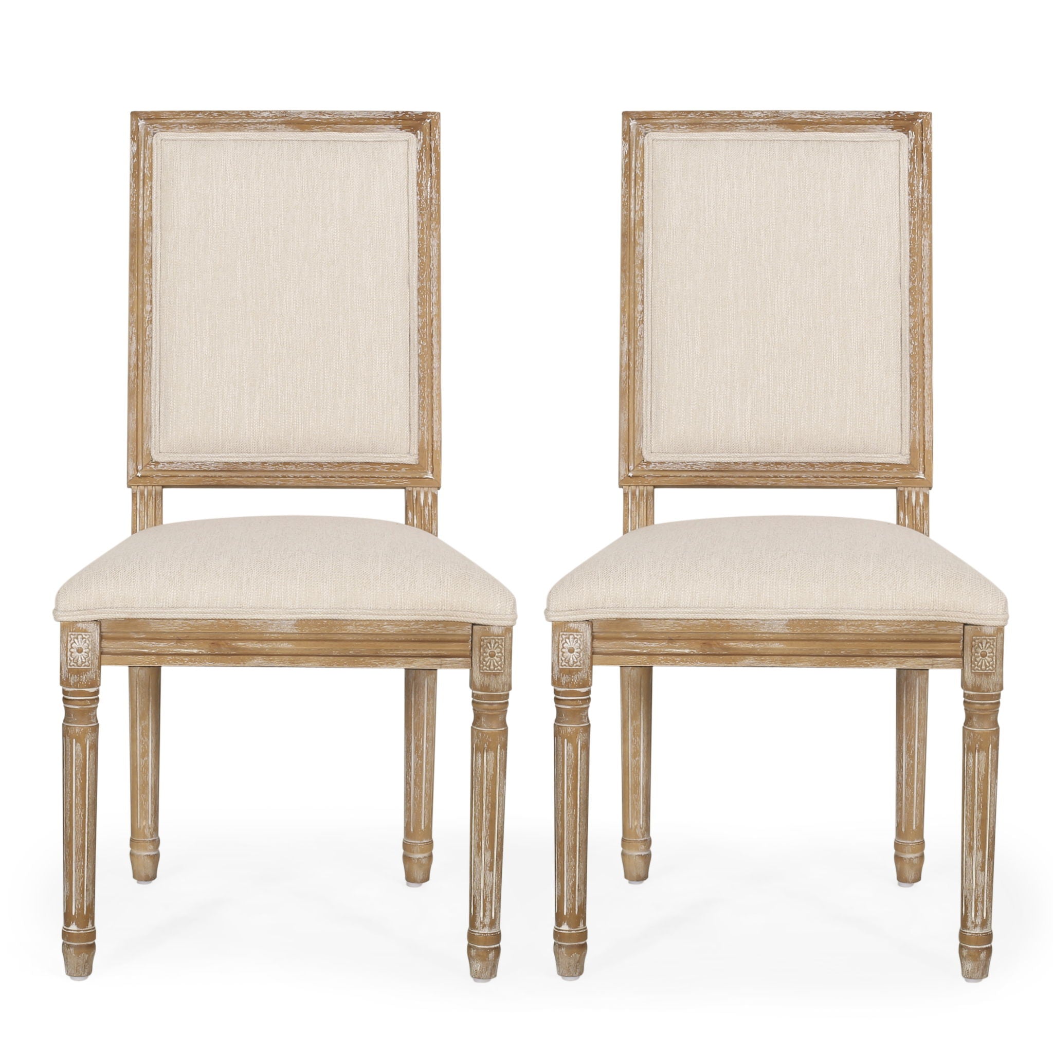 French Country Style Dining Chair Set With Upholstered Seats - Beige