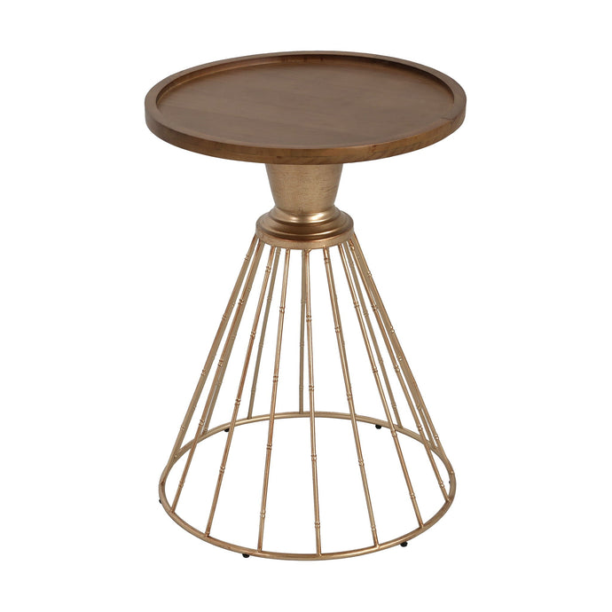 Hollow - Edge Retro Art Pine Side Table With Antique And Natural Color, Iron And Pine Construction - Antique Gold / Natural
