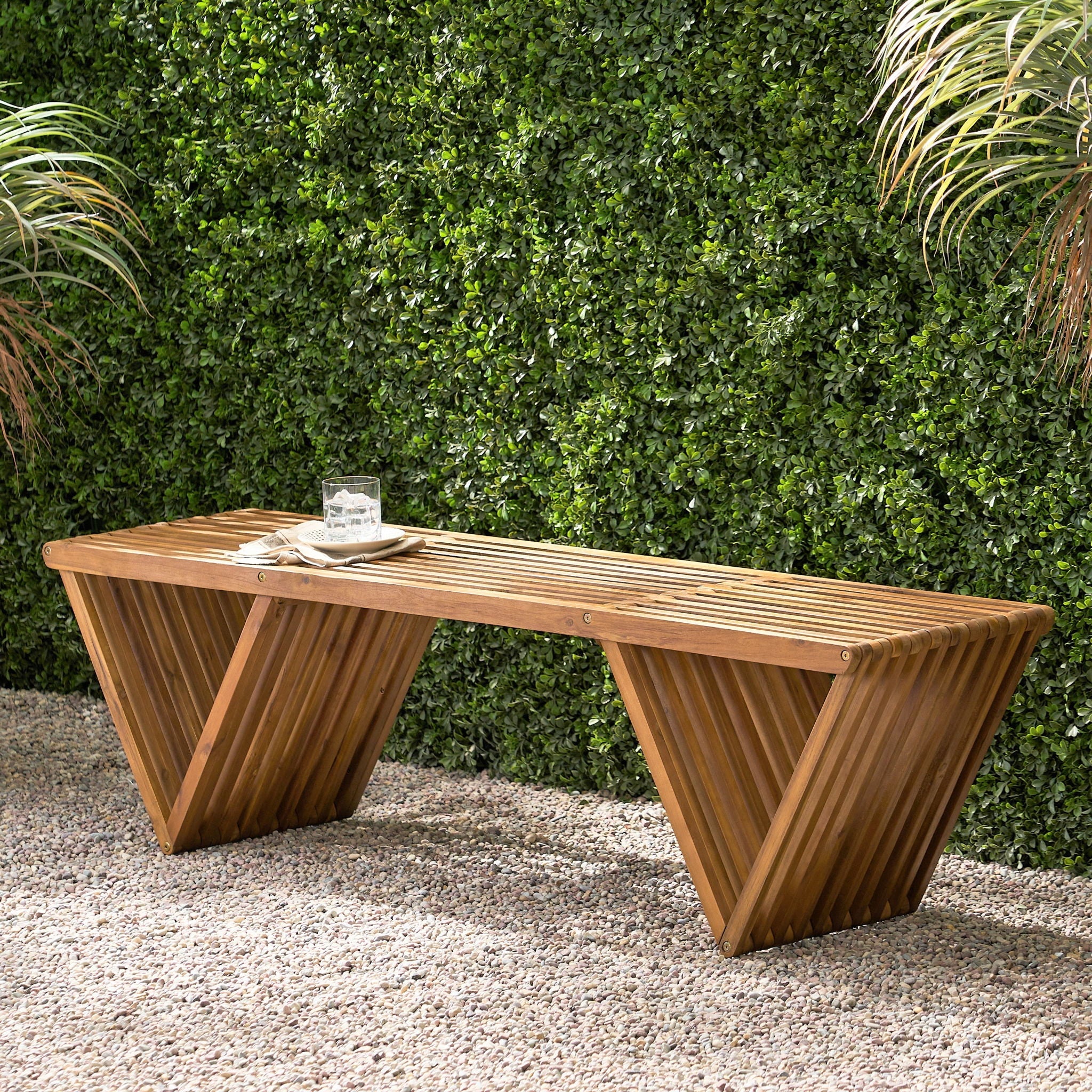 - Premium Acacia Wood Construction Built from naturally durable acacia wood, this bench combines strength and beauty with its rich grain patterns and weather-resistant properties. The dense hardwood construction resists warping, cracking, and fading, ensuring the bench maintains its sleek, exotic appearance season after season without requiring extensive maintenance.