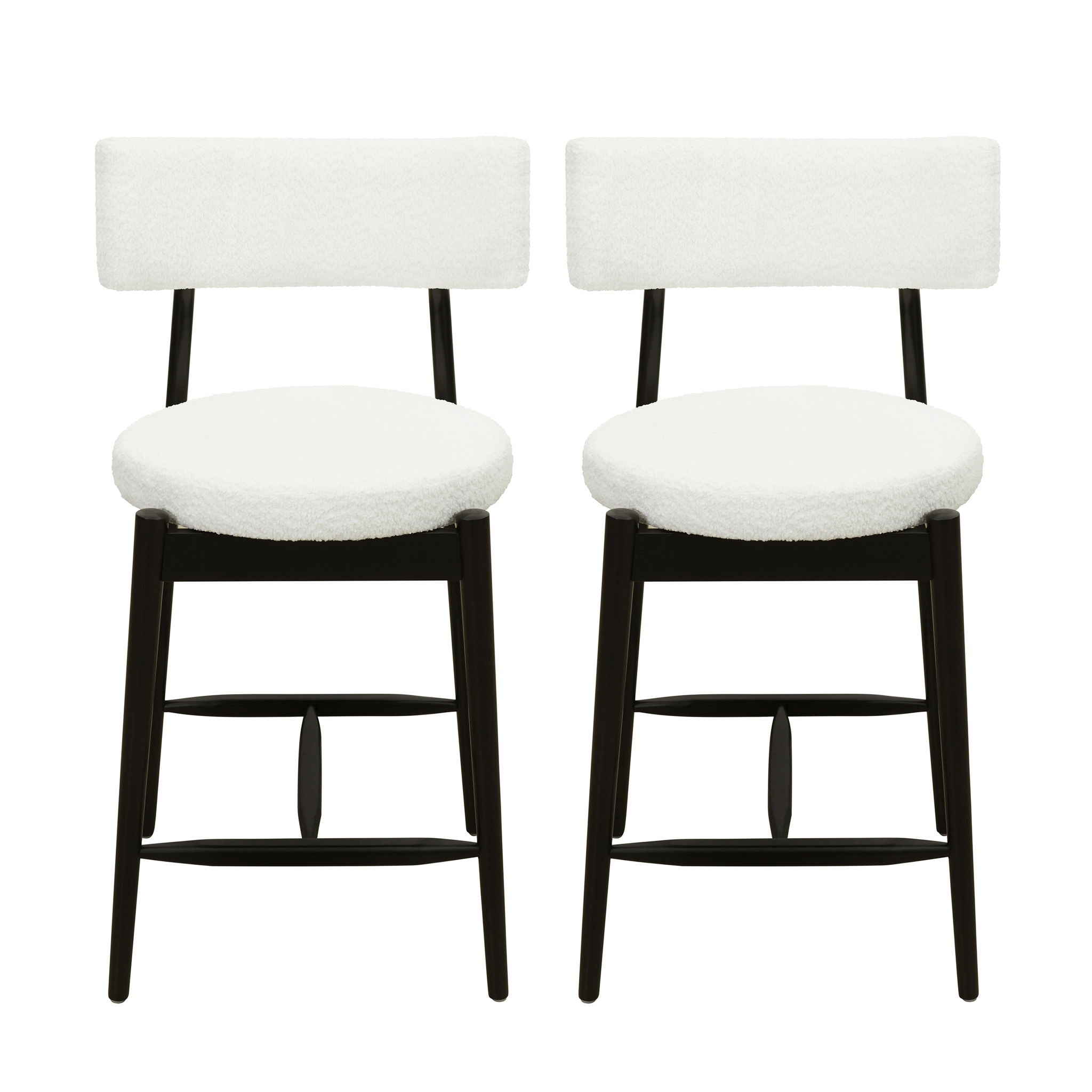 Mid Century Modern Counter Stool (Set of 2) With Upholstered Seat - Black / Beige