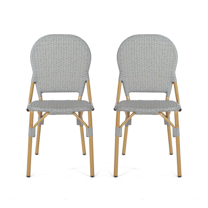 Outdoor Rattan And Aluminum Armless French Bistro Chairs (Set of 2) - Dark Gray