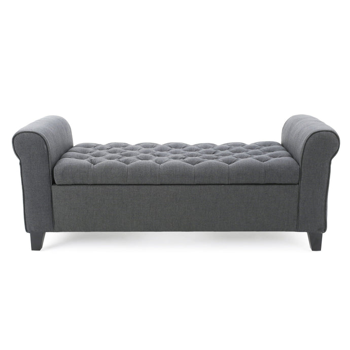 Hayes - Contemporary Armed Storage Bench With Rolled Arms And Button Tufting