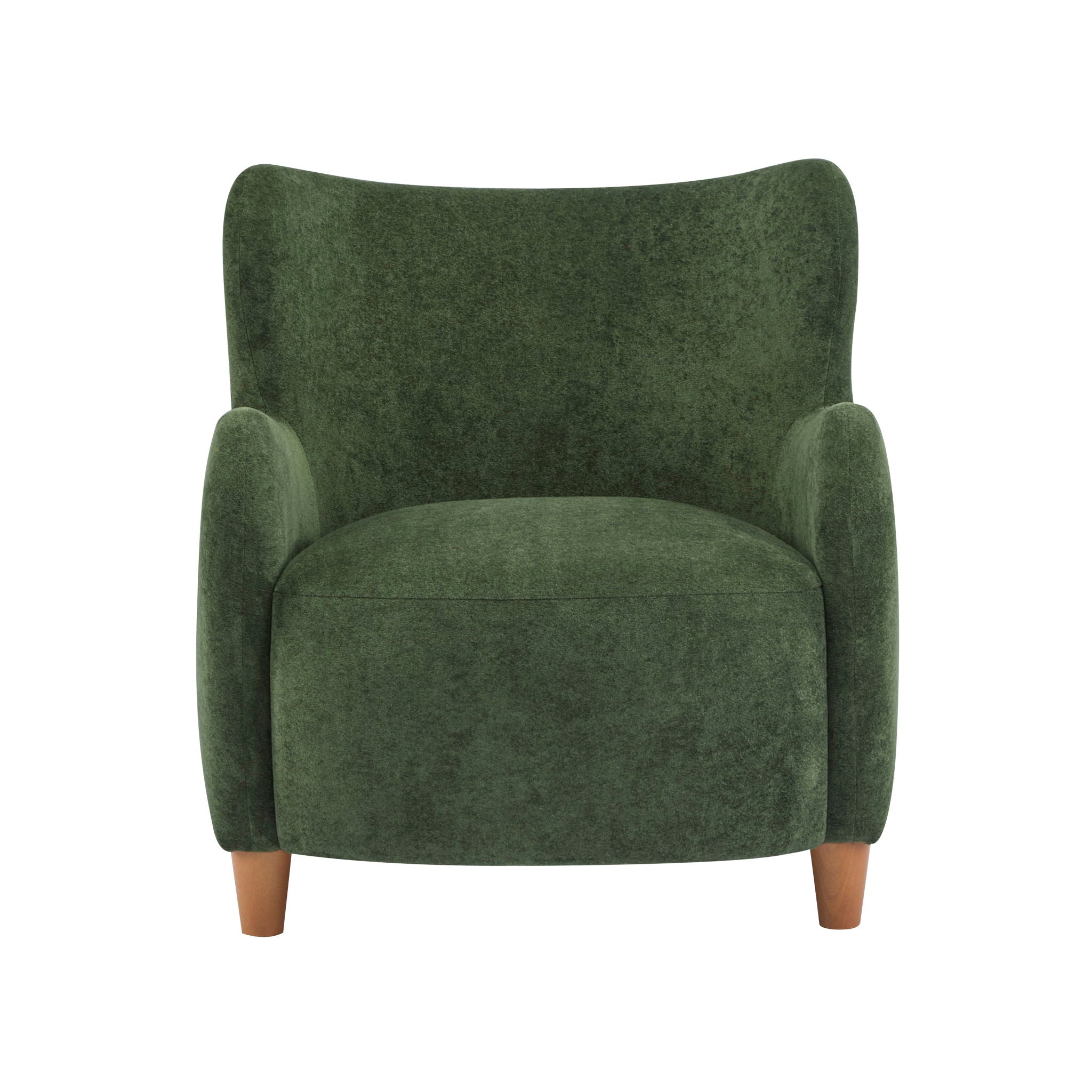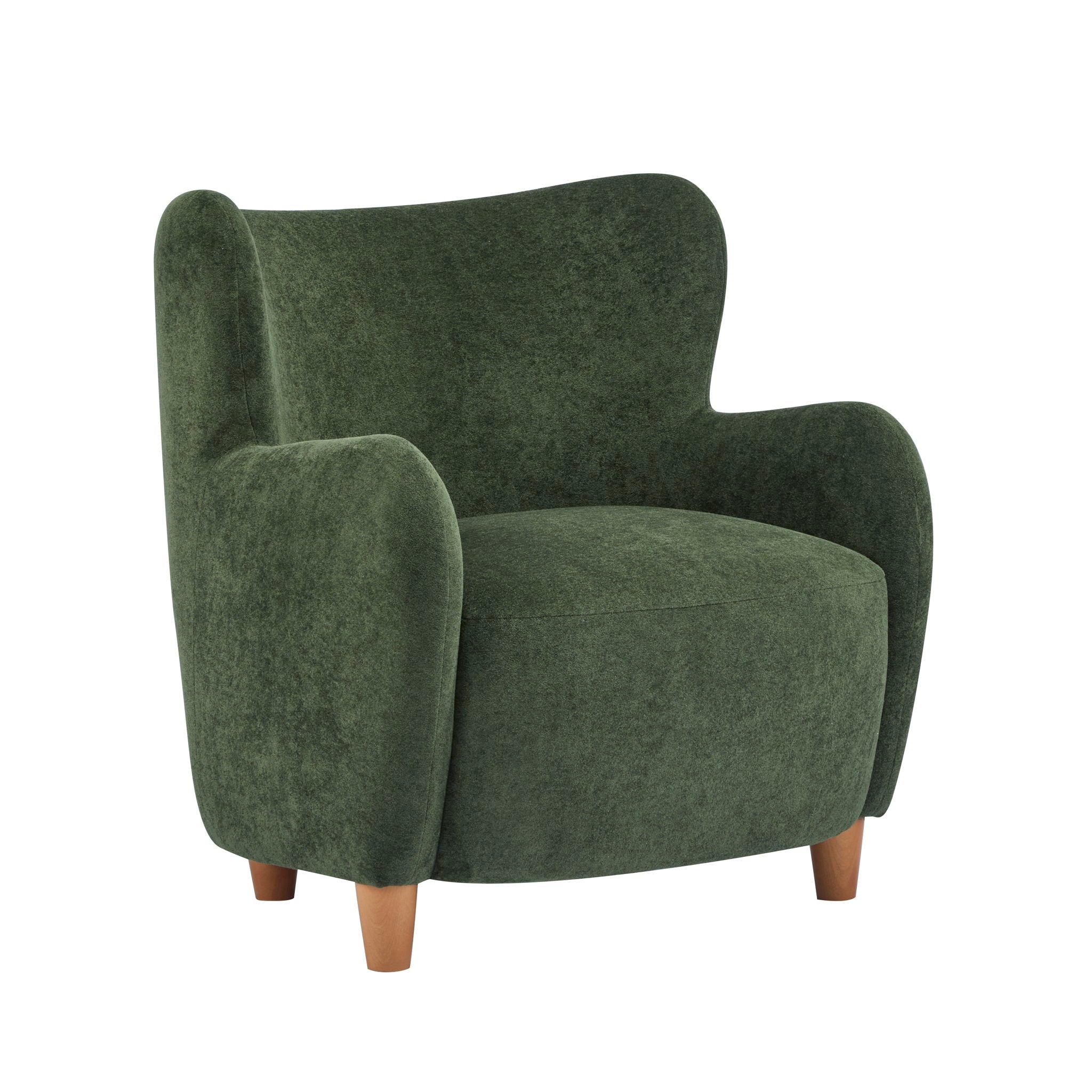 Lucia - Wingback Armchair With Luxe Winged Back - Olive Green / Teak