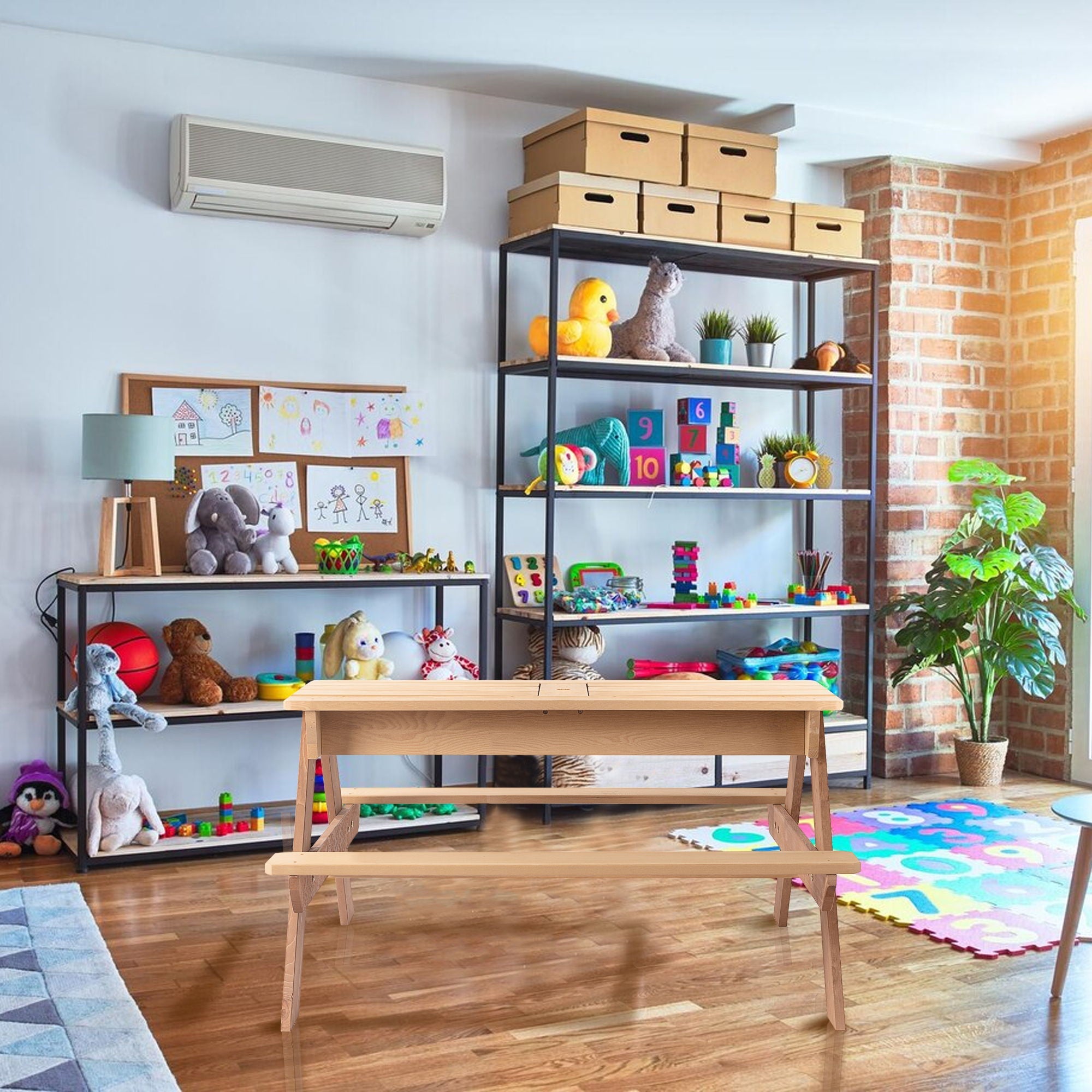 • 3-in-1 Design: Multifunctional table can be used as a picnic table, activity table, sand table, or water table with sink toys.