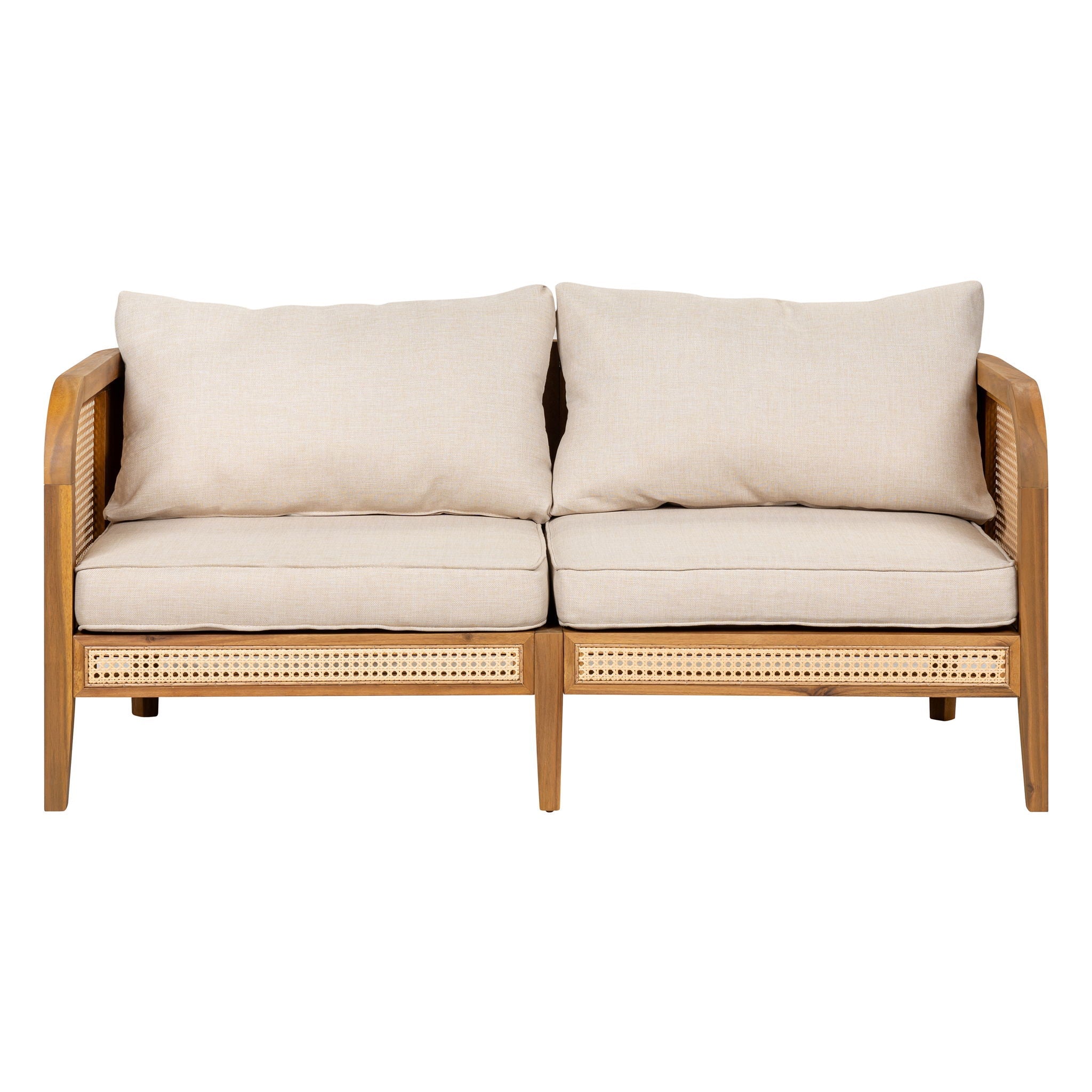 Kirkby - Bohemian Outdoor Patio Cushioned Sofa Weatherproof 56.25In - Teak / Beige