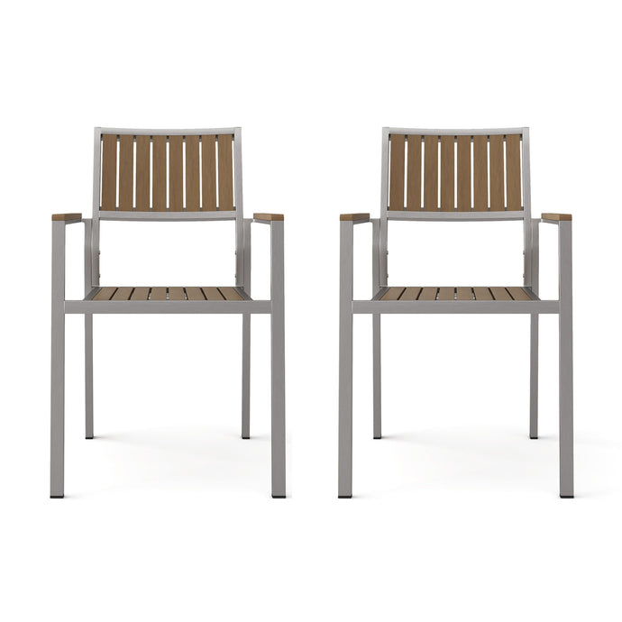 Stylish Modern Faux Wood & Aluminum Outdoor Dining Chairs, (Set of 2) - Natural