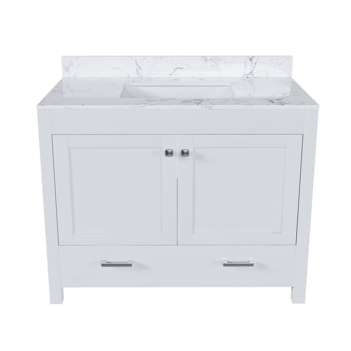 43" Bathroom Vanity With Artificial Marble Carrara Top Set, Multi Functional Cabinet With Doors And Drawer - White