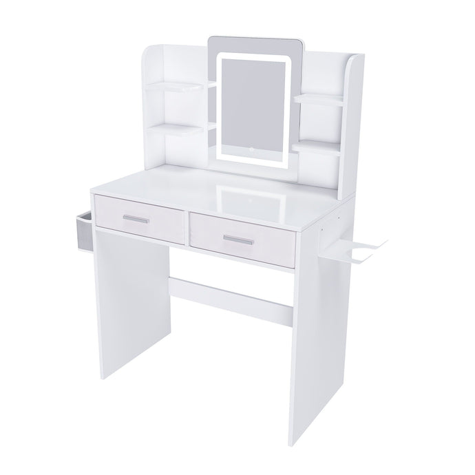 Elegant LED Mirror Vanity Dressing Table With Adjustable Lights, Drawers & Storage - White