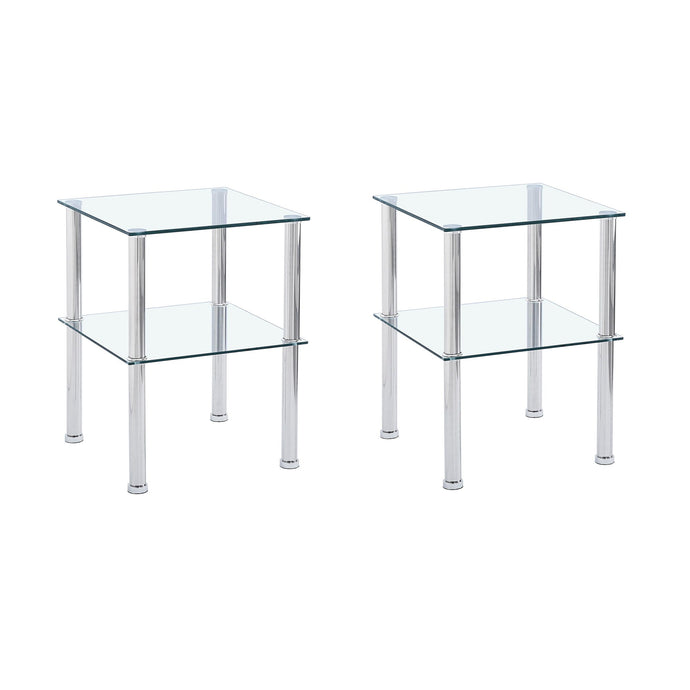 Modern 2 Piece Side Table With Storage Shelf, Tempered Glass, Space Saving Design - Clear