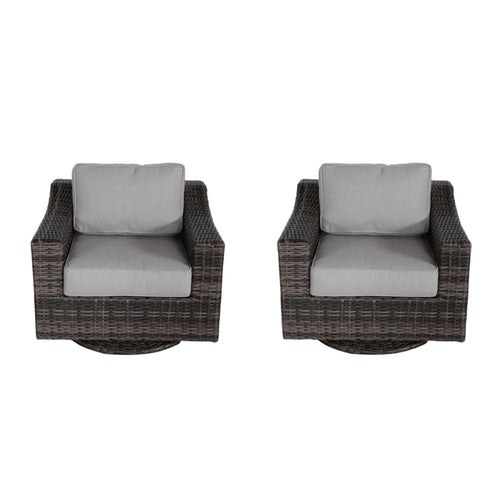 Contemporary Outdoor Swivel Patio Chair With Cushions (Set of 2) - Brown