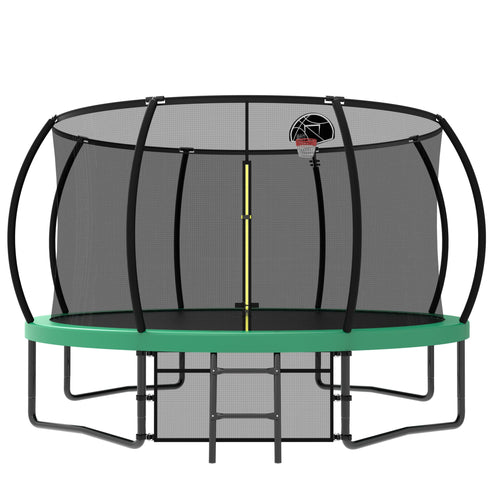 12' Recreational Kids Trampoline With Safety Enclosure Net & Ladder, Outdoor Recreational Trampolines