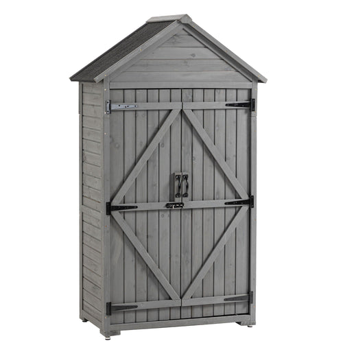 Outdoor Storage Cabinet, Garden Wood Tool Shed, Outside Wooden Shed Closet With Shelves And Latch For Yard