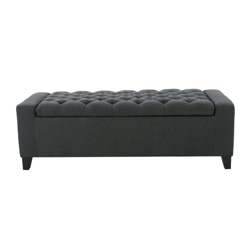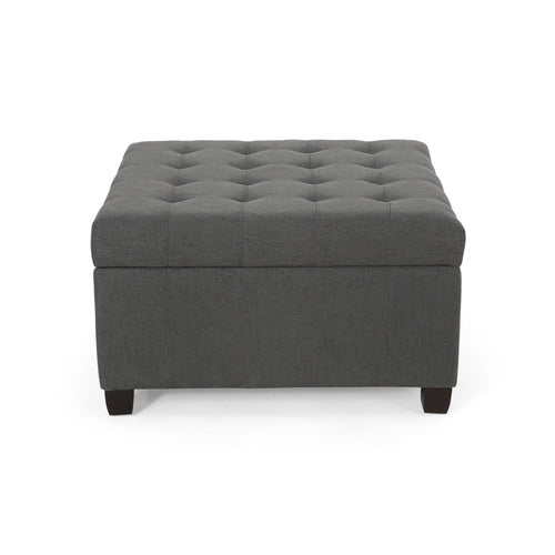 • Contemporary Storage Ottoman With Tufted Top - Dark Gray
