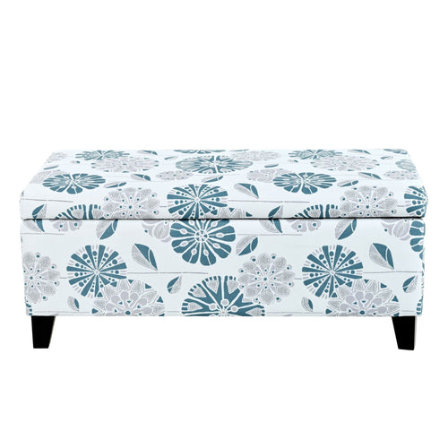 • Luxury Storage Ottoman With Floral Patterned Fabric, Soft-Close Hinges, Multi Functional