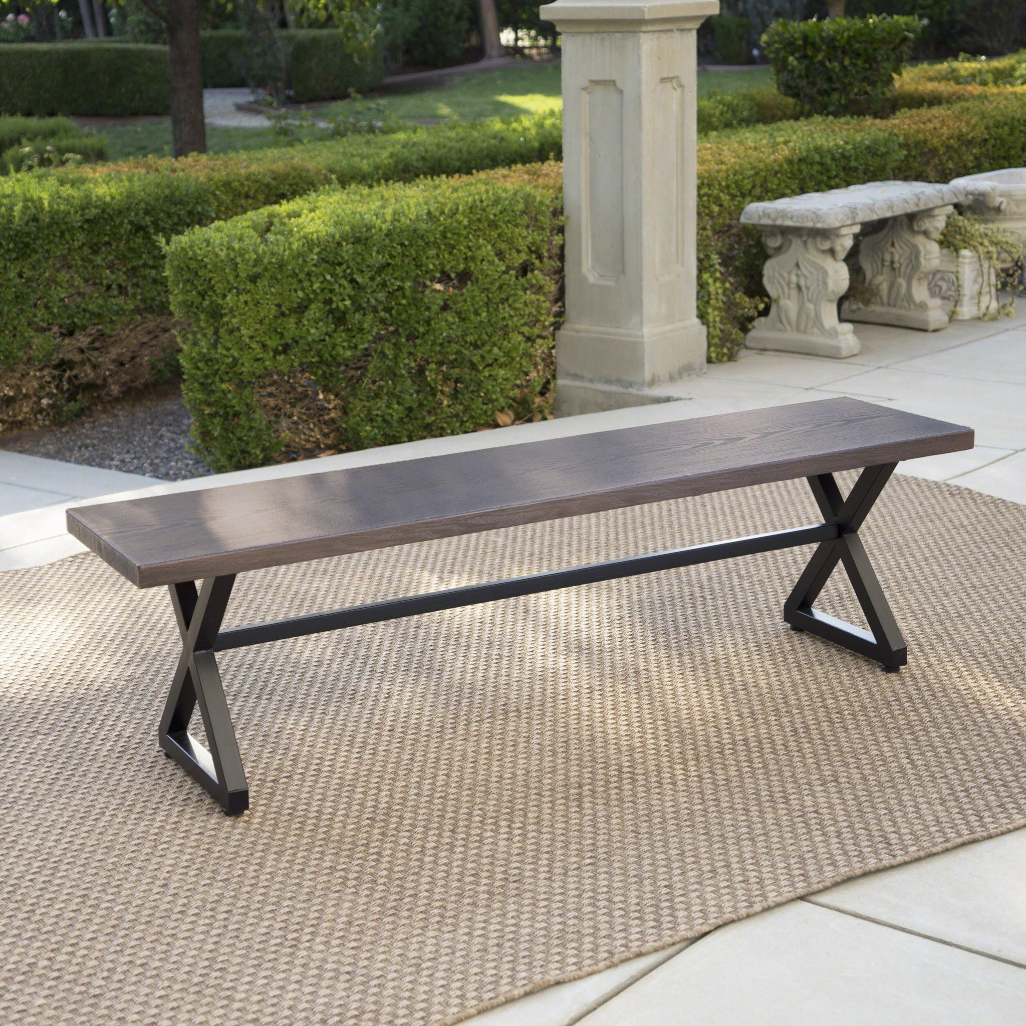Modern Industrial Outdoor Aluminum Dining Bench With Steel Frame - Brown / Black