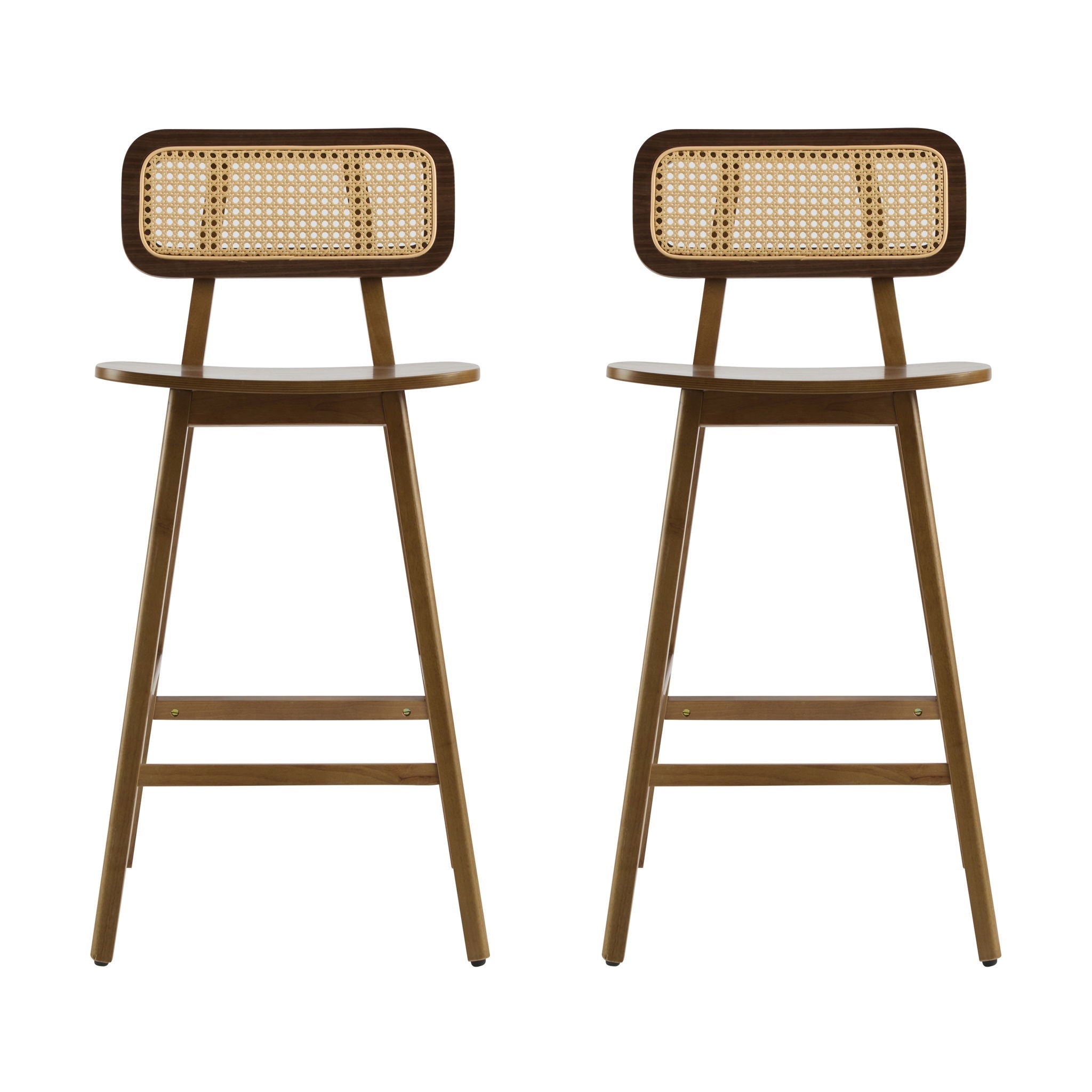 Bari - Indoor Wood Barstool (Set of 2) With And Rattan Backrest - Natural
