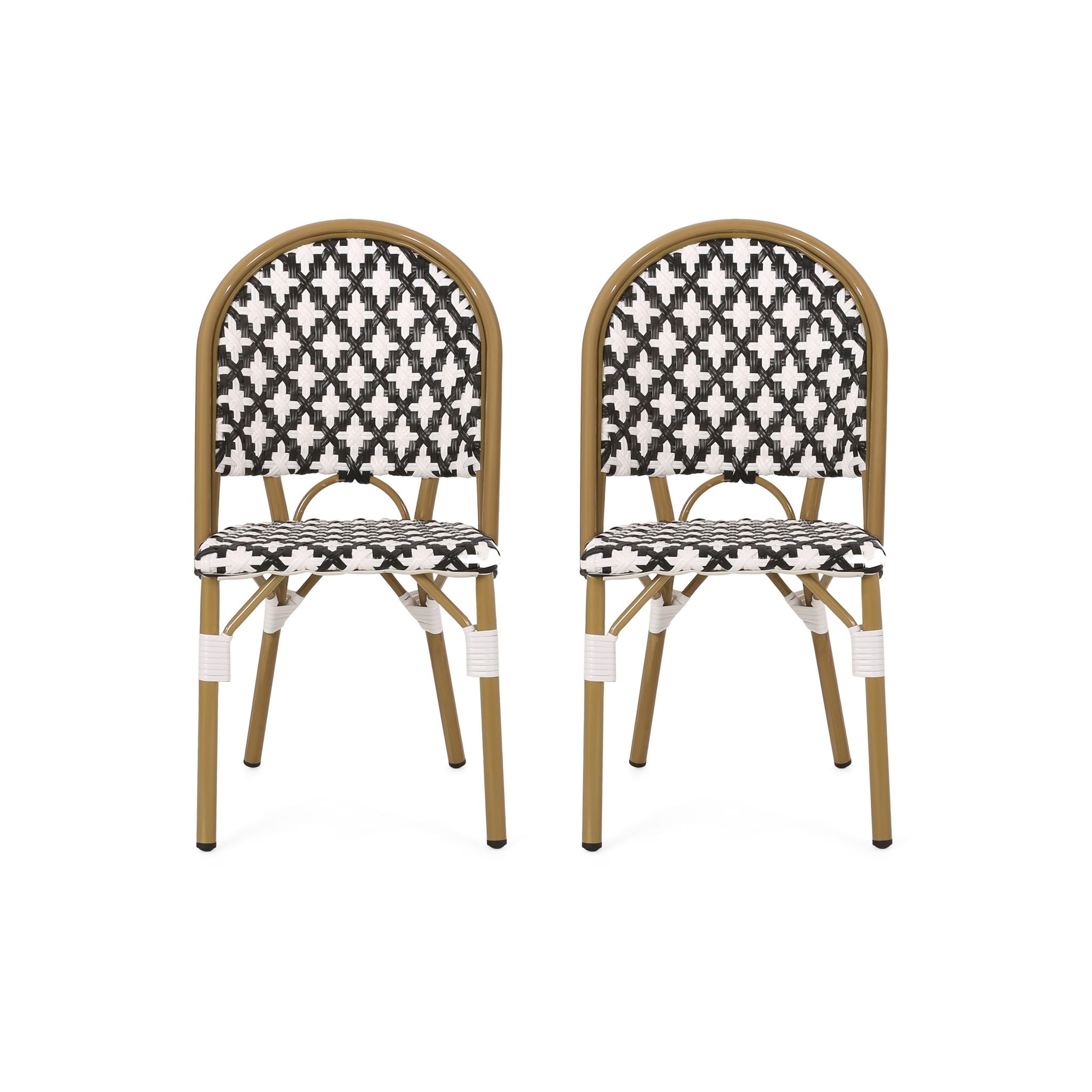 Chic French Bistro Chair With Durable Rattan And Aluminum Frame - White / Black