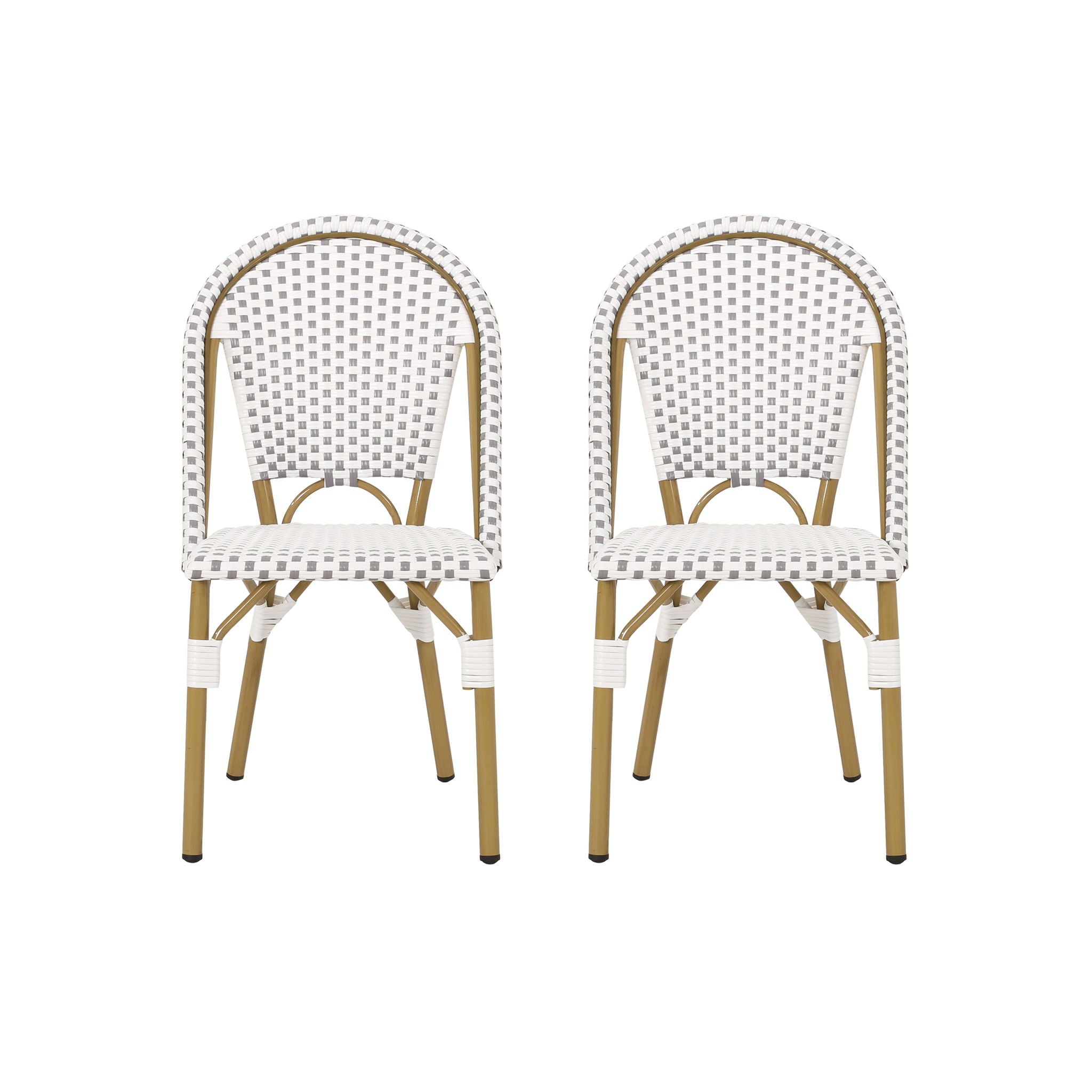 Sophisticated French Bistro Chair Set With Aluminum Frame And Polyethylene Rattan - White / Gray