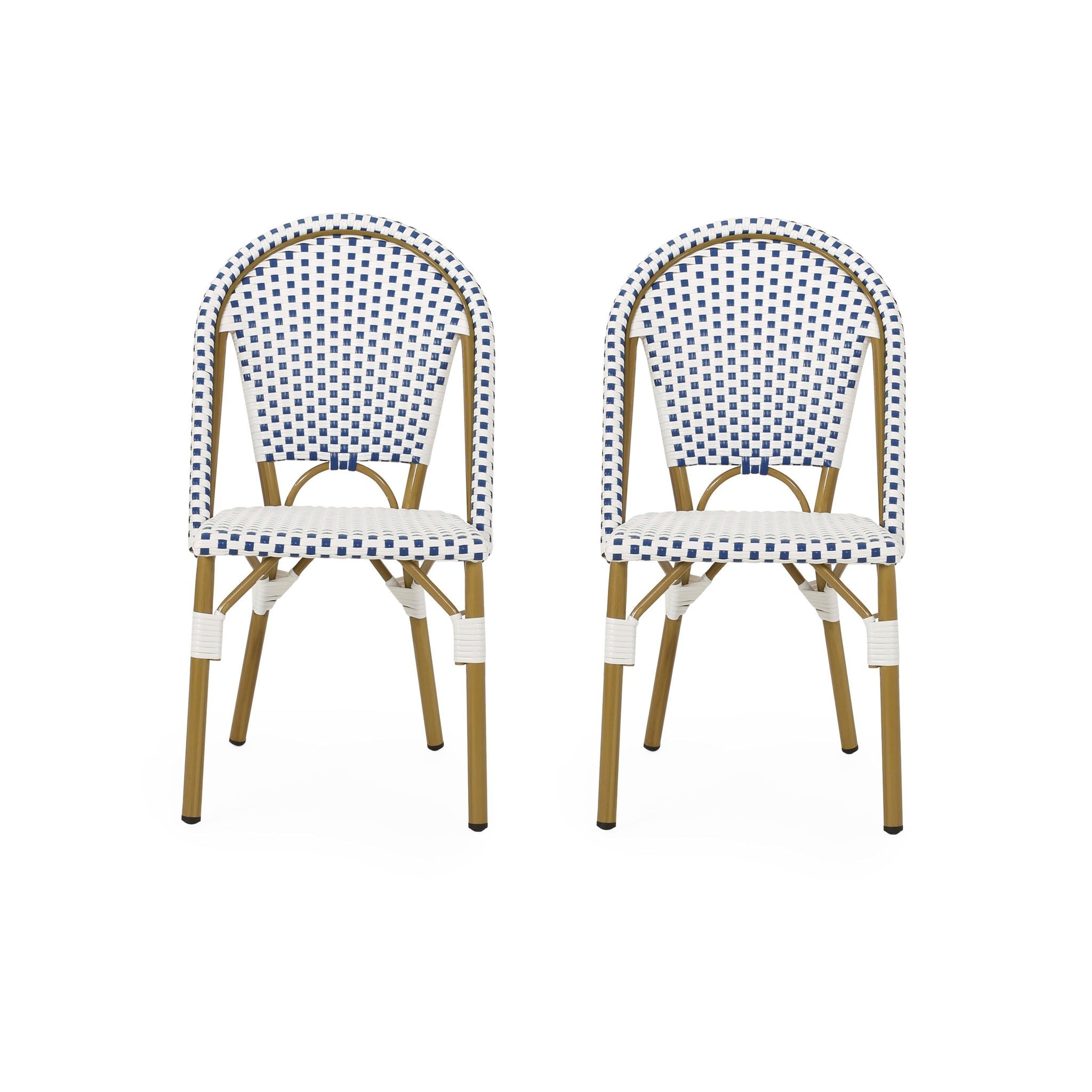 Sophisticated French Bistro Chair Set With Rattan - White / Blue