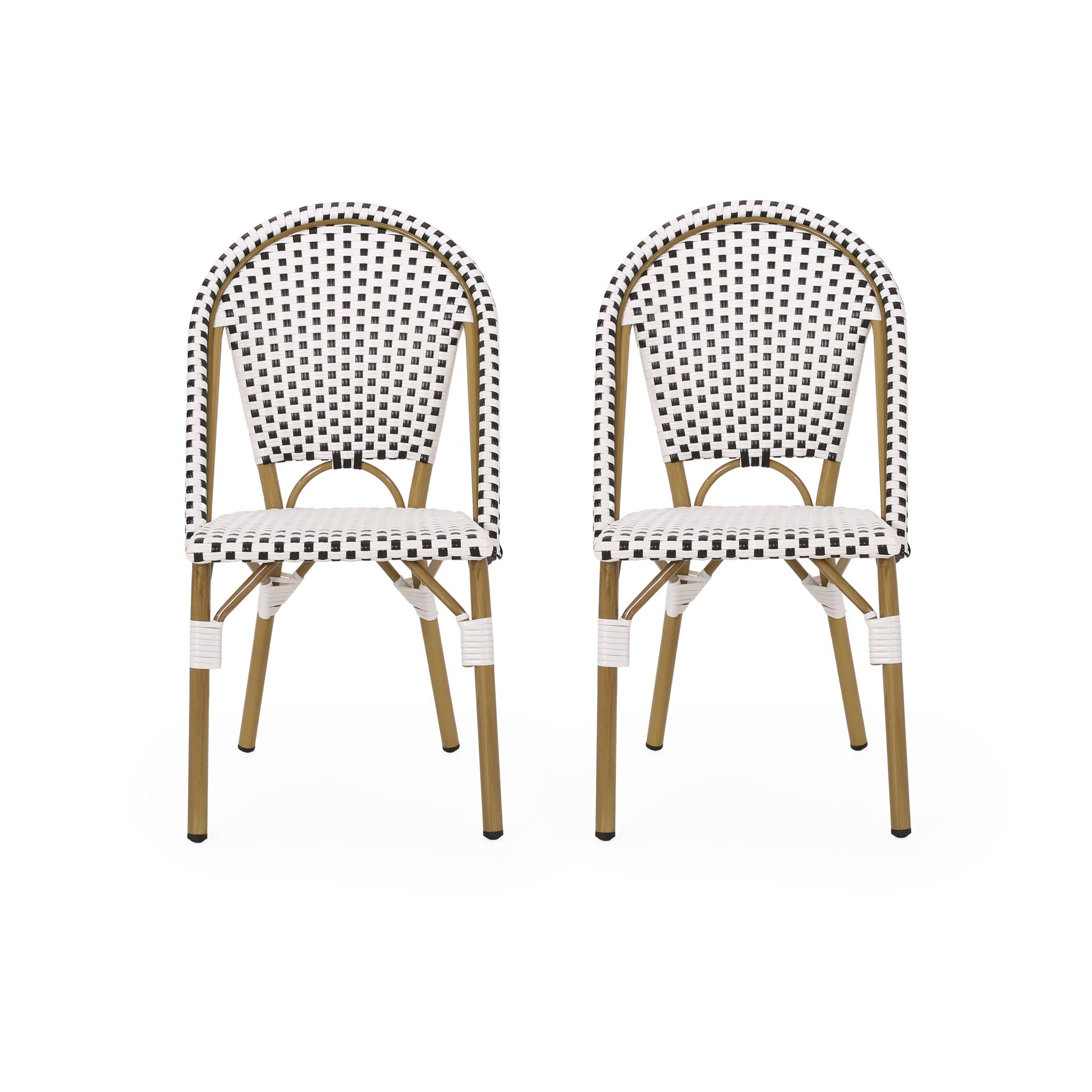 Outdoor Rattan And Aluminum French Bistro Chairs (Set of 2) Bamboo Print - Rust Red / White