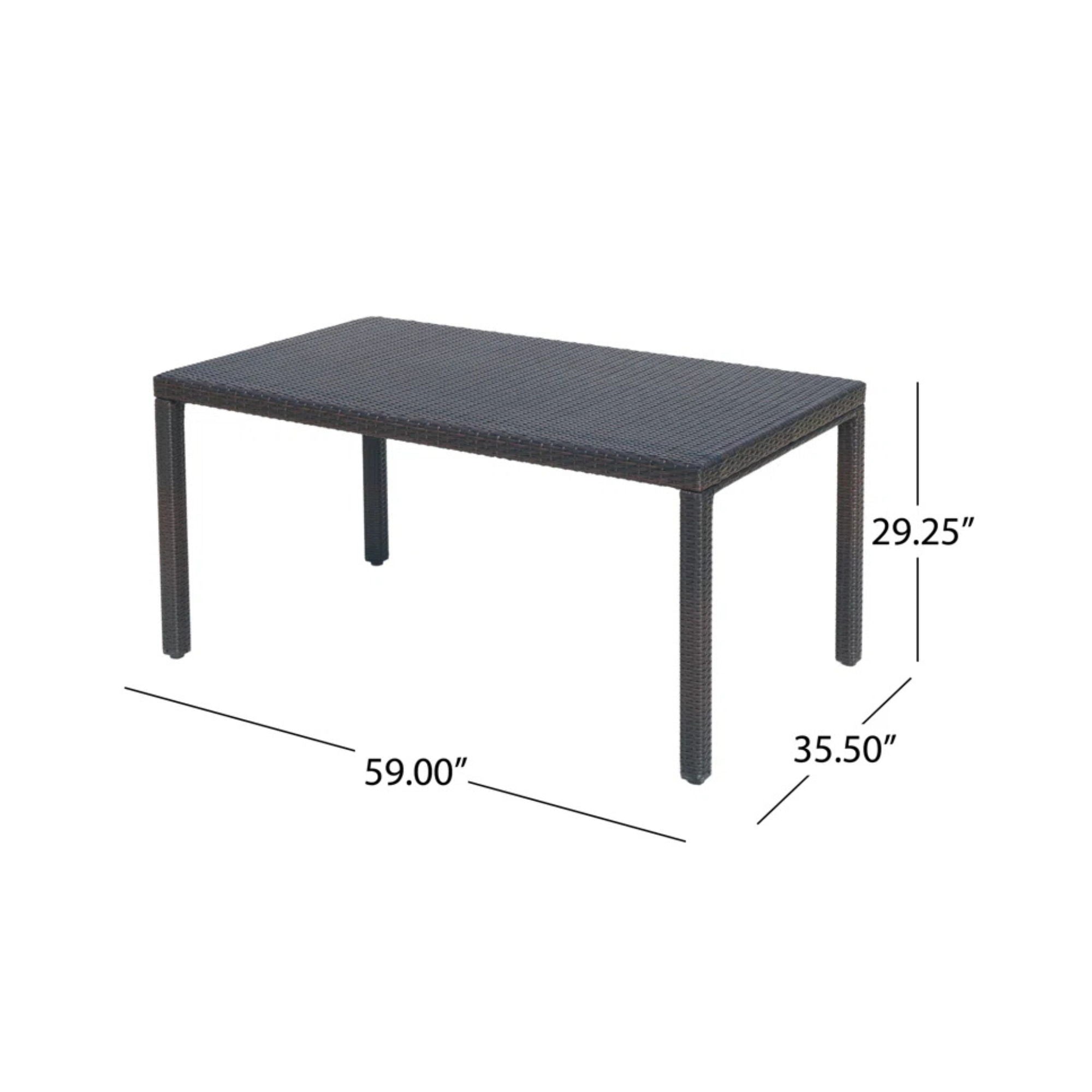 Outdoor Wicker Rectangular Dining Table With Iron Frame And Water Resistant Rattan - Brown