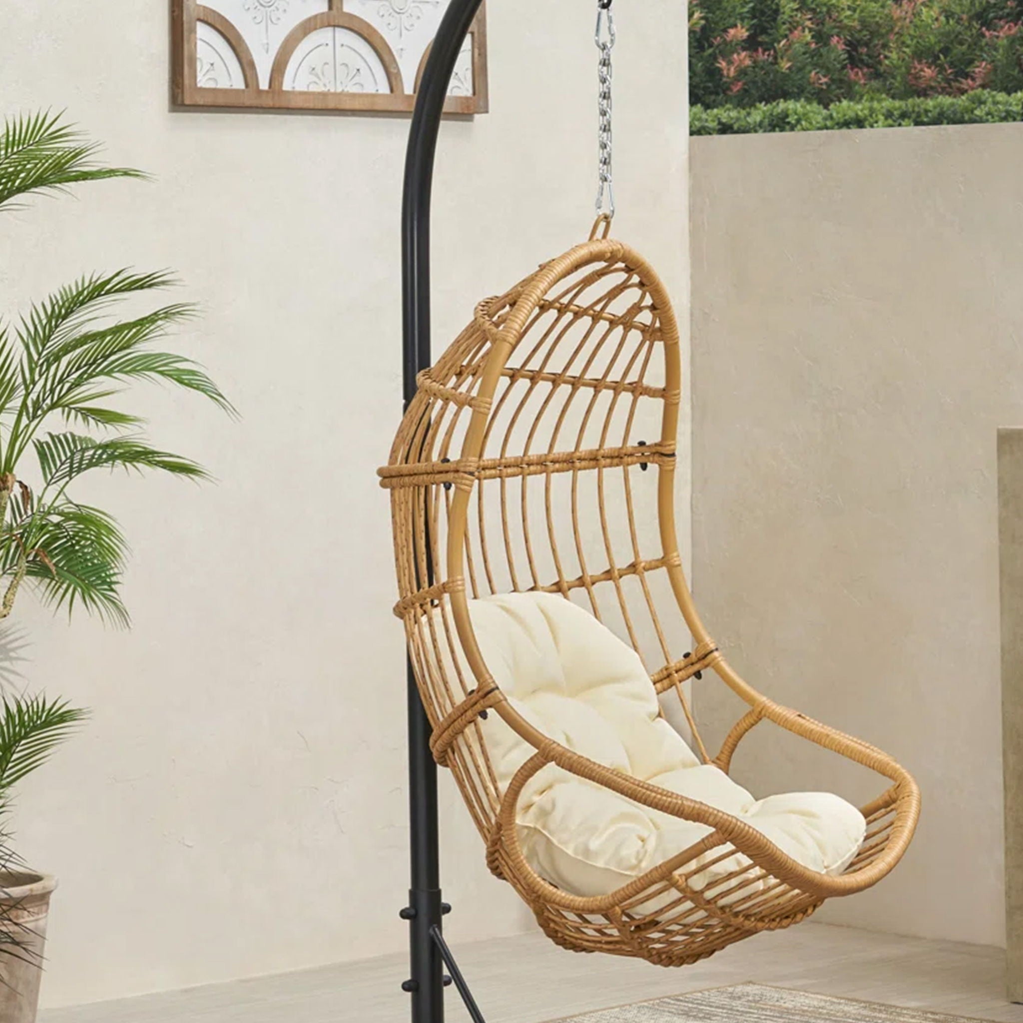 - Basket chair: This hanging chair offers cozy open-basket seating that cradles you while you swing and handles to help you get in and out of the chair.