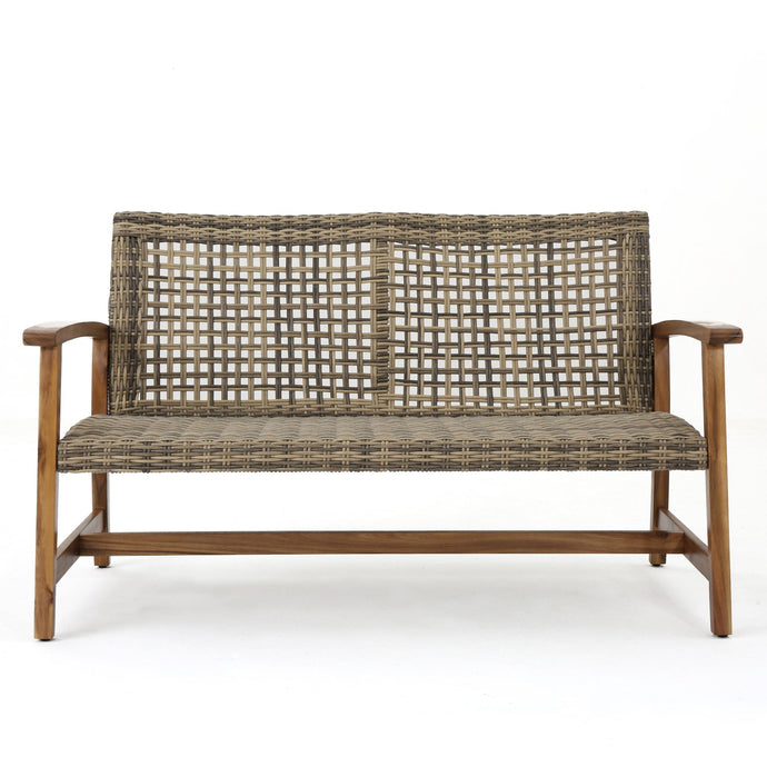 Outdoor Rattan Loveseat With Wooden Legs - Brown