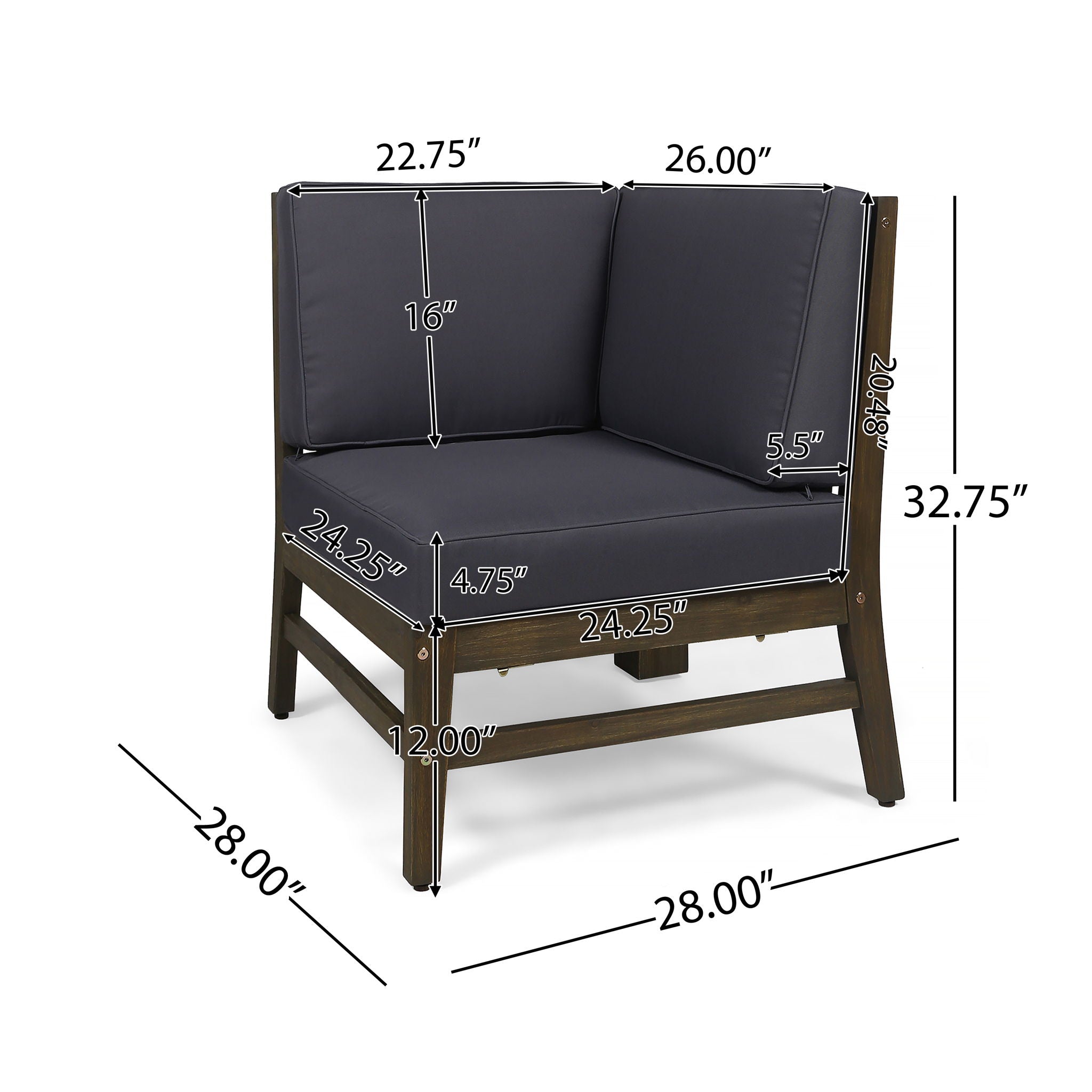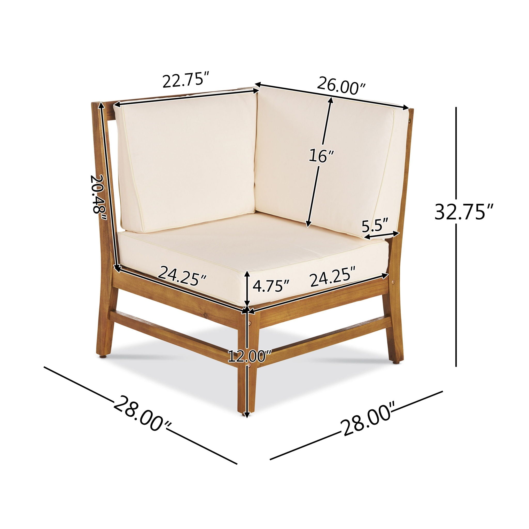 - Acacia Wood Frame: The PERLA CORNER CHAIR features a sturdy acacia wood frame that offers a modern look to your outdoor area. Its natural finish and weather-resistant properties make it an ideal addition to your patio or backyard.