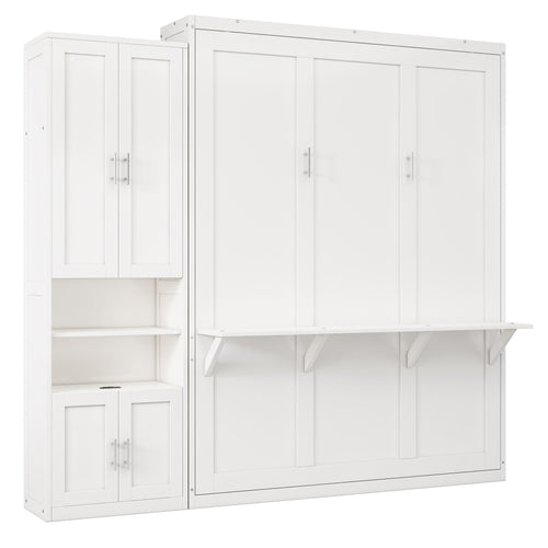 Murphy Bed With Side Cabinet Storage Shelf, Folding Wall Bed With Desk Combo