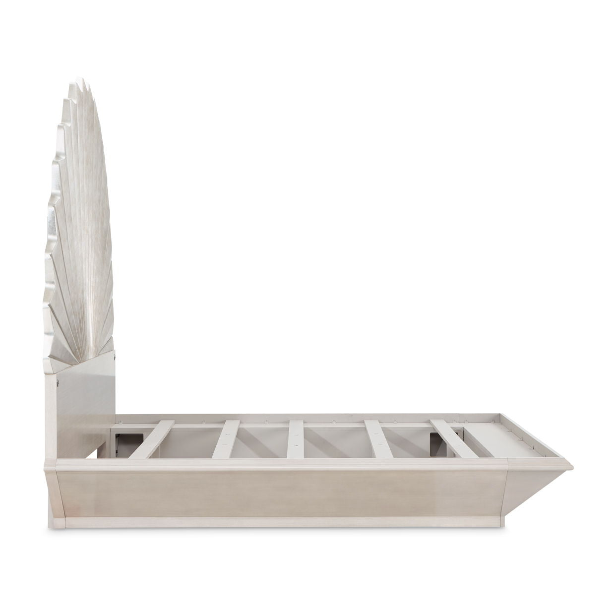 • Radiant Statement: A grand fan-shaped headboard finished in exquisite silver leaf for captivating visual impact.