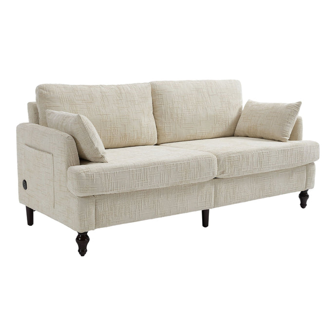 Chenille 2 Seater Sofa With LED Light, USB Charging Port, And Storage Bag