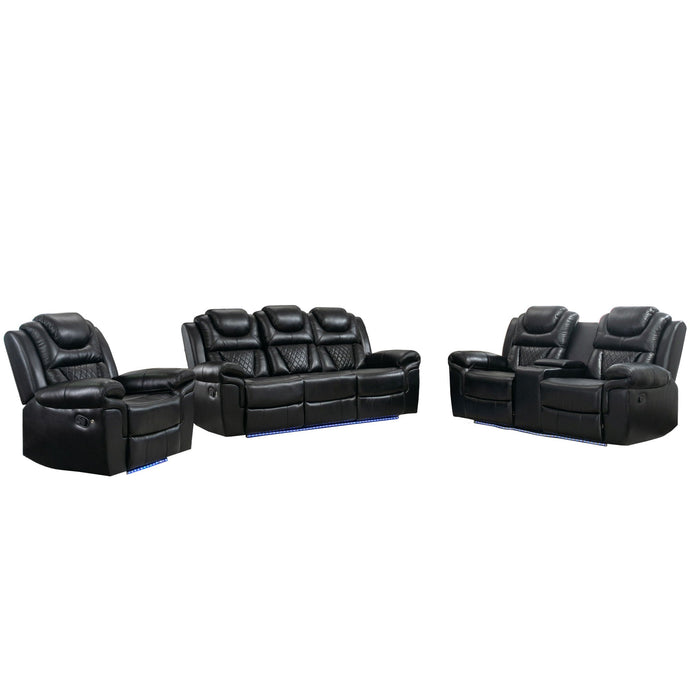 3 Pieces Recliner Sofa Sets Home Theater Seating Manual Recliner Chair With Center Console And LED Light Strip For Living Room