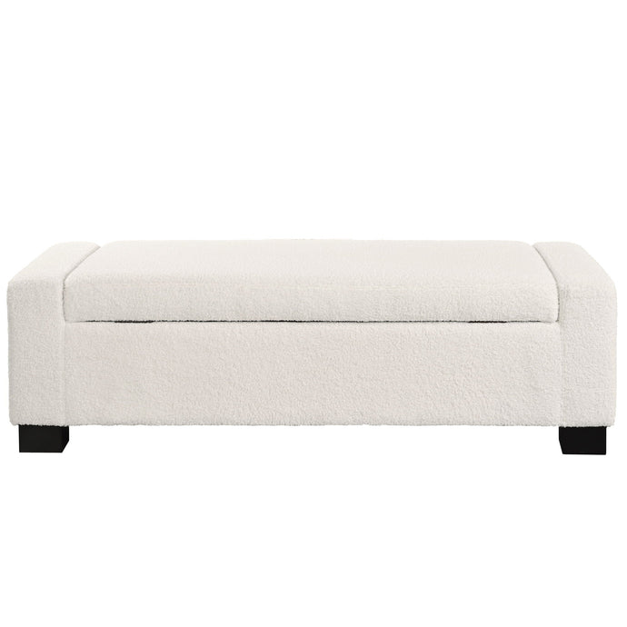 • Textured Boucle Ottoman Bench With Hinged Lid For Seating And Storage - Beige