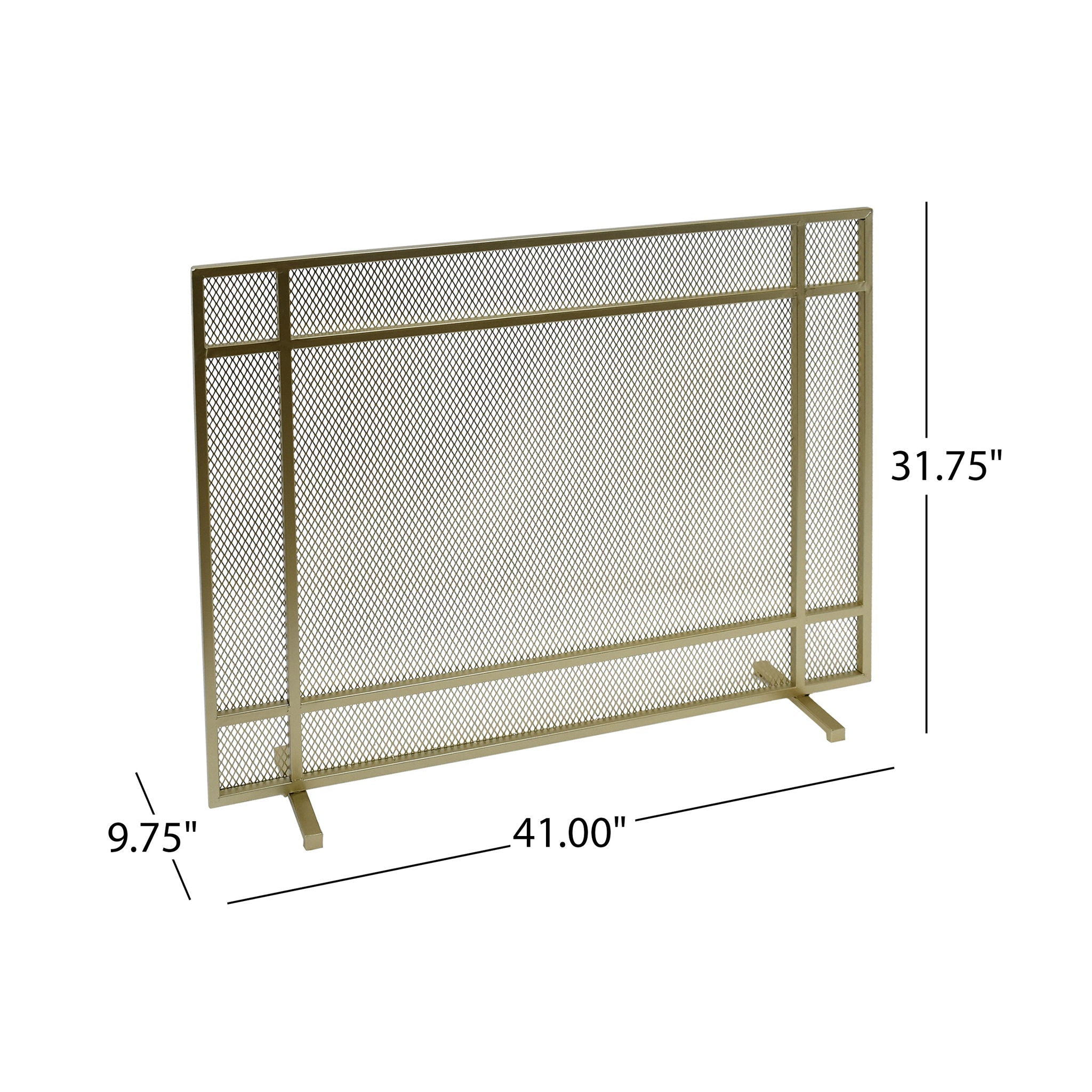 Modern Single Panel Iron Fireplace Screen Handcrafted Minimalistic Design - Gold